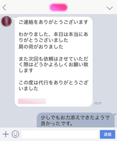 退職者様より、「本日は本当にありがとうございました。肩の荷がおりました。また次回も依頼させていただく際はどうかよろしくお願い致します。この度は代行をありがとうございました。」とのお言葉を賜りました。