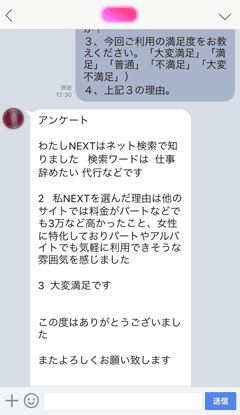 ②わたしNEXTを選んだ理由: 私NEXTを選んだ理由は他のサイトでは料金がパートなどでも3万など高かったこと、女性に特化しておりパートやアルバイトでも気軽に利用できそうな雰囲気を感じました